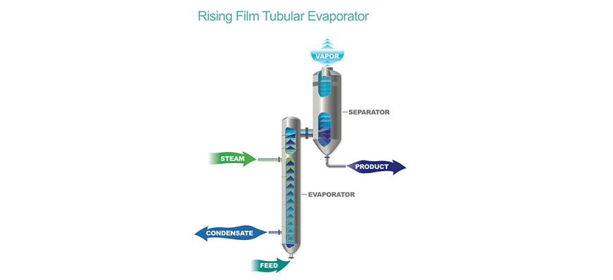 This is to produces steam and vapour within the tube bringing the liquid inside to a boil. The vapour produced then presses the liquid against the walls of the tubes and causes the ascending force of this liquid. As more vapour is formed, the center of the tube will have a higher velocity which forces the remaining liquid against the tube wall forming a thin film which moves upwards. This phenomenon of the rising film gives the evaporator its name.